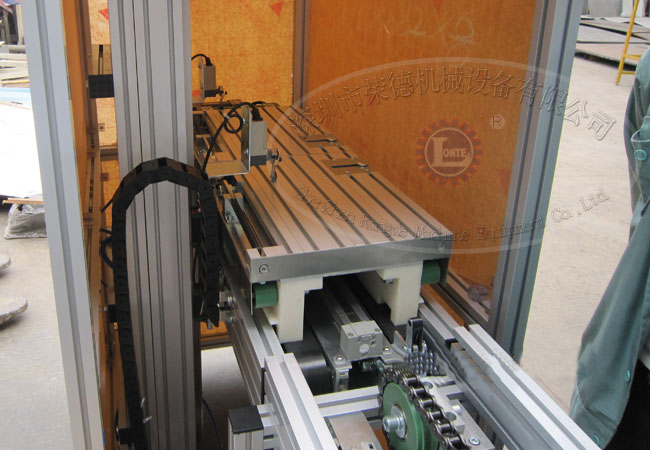 高鐵門自動裝配流水線技術(shù)優(yōu)勢:針對高鐵門驅(qū)動部分,尺寸長短不一且很沉重,不好定位,設(shè)計(jì)一套能自動流動工裝小車,小車采用一組帶手動離合驅(qū)動小車,一組被動小車,且產(chǎn)品放到主驅(qū)動小車,通過一個(gè)升降壓板壓緊產(chǎn)品的底板(可適應(yīng)2-6mm的底板),另一組被動小車依產(chǎn)品長度調(diào)到合適位置,由升降壓板壓緊定位好進(jìn)行產(chǎn)品組裝,組裝一部分后,由輸送帶送至下一站,進(jìn)行下一道工藝組裝,一共進(jìn)行9道工序組裝后,產(chǎn)品取下,工裝小車由提升機(jī)送至下層返回輸送帶,從另一頭起點(diǎn)提升循環(huán)使用。