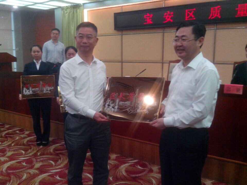區(qū)長王宏彬同志為獲獎企業(yè)頒發(fā)了獎杯,獎杯上“以質(zhì)取勝碩果累,寶安品牌新標(biāo)桿”的大字激勵著我們質(zhì)量工作者并就全區(qū)質(zhì)量工作做了重要講話,主要有以下內(nèi)容: