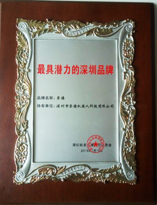 作為行業(yè)內(nèi)唯一獲得深圳知名品牌的深圳本土民族品牌,深圳市榮德機(jī)器人科技有限公司自創(chuàng)立以來,一直非常注重品牌建設(shè)工作,并成功導(dǎo)入卓越績效管理模式,并于2013年獲得了“廣東省名牌產(chǎn)品”的榮譽(yù)稱號,成為行業(yè)內(nèi)第一家獲此殊榮的領(lǐng)軍企業(yè)。借此獲得深圳知名品牌之際,榮德機(jī)器人將狠抓產(chǎn)品質(zhì)量,為響應(yīng)習(xí)總書記三個轉(zhuǎn)變的重要思想將中國機(jī)器人民族品牌做大做強(qiáng),為振興民族工業(yè)、提升民族品牌、替代進(jìn)口品牌作出企業(yè)應(yīng)盡的努力。