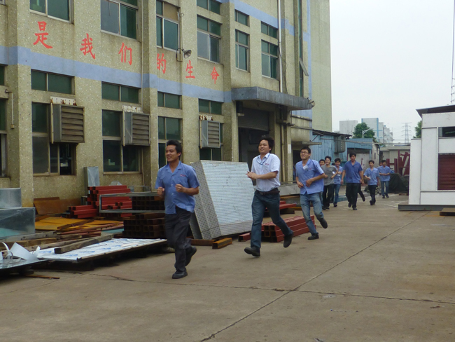 2014年4月26日17點(diǎn)整,消防警鈴響起,義務(wù)消防隊(duì)疏散組成員在第一時(shí)間分別趕到公司辦公樓各樓層以及宿舍內(nèi),在他們的喊話提醒下將所有員工于120秒內(nèi)有序地疏散到廠外的安全區(qū)域,在整個(gè)過程中,秩序井然、無人員受傷和擁擠踩踏的情況。要知道此次逃生演習(xí)的過程員工是不知情的,僅疏散組成員提前開會(huì)討論過。逃生演習(xí)拉開了此次消防演習(xí)的序幕。