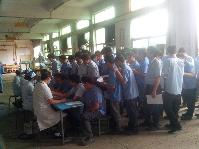近日公司組織了全體員工的年度體檢活動(dòng),把關(guān)愛(ài)員工身體健康的措施進(jìn)一步落實(shí)。醫(yī)院體檢車直接開(kāi)到公司大院內(nèi)對(duì)全體員工進(jìn)行體檢。當(dāng)員工井然有序地排隊(duì)抽血、拍片、查血壓等項(xiàng)目時(shí),也深深體會(huì)到公司對(duì)他們的呵護(hù)。相信榮德公司的全體伙伴能夠珍惜這份工作,在工作當(dāng)中努力付出,為客戶提供高品質(zhì)、高性價(jià)比的噴涂機(jī)器人、自動(dòng)化生產(chǎn)線,最大限度地達(dá)到客戶滿意。