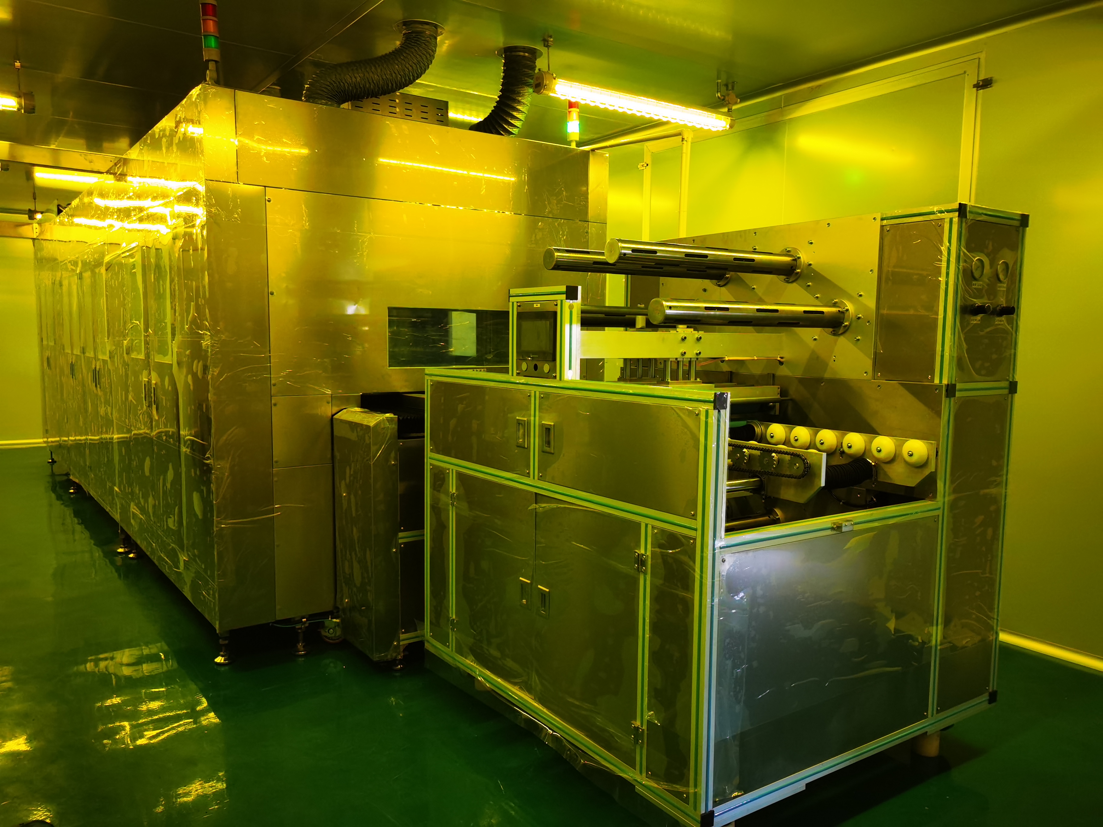 2、開啟機(jī)器后分別以2.5-4m/min的線速從入料口投入并試噴