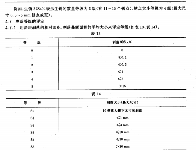 4.如漆膜有數(shù)種破壞現(xiàn)象,評(píng)定等級(jí)時(shí),應(yīng)按按破壞最嚴(yán)重的一項(xiàng)評(píng)定。